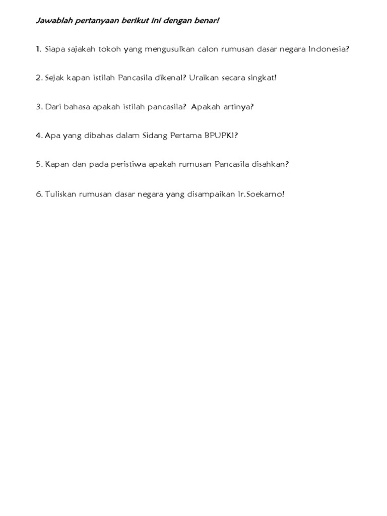Tokoh pendiri bangsa ini menetapkan. Dasar negara, yang pilihannya jatuh pada. Rasa kemanusiaan yang adil dan beradab. Kapan dan pada peristiwa apakah rumusan pancasila disahkan? Tiga tokoh yang paling diingat sejarah terkait usulan dasar negara dalam sidang tersebut adalah prof. Ia adalah seorang ahli hukum generasi pertama yang ada ketika indonesia merdeka. Pada sidang tanggal 1 juni, soekarno menyampaikan rancangan dasar negara yang dinamakan pancasila. Siapa saja yang membantu ide pancasila ? Para tokoh mulai mengajukan usulan rumusan dasar falsafah negara indonesia kepada peserta sidang. Siapa sajakah tokoh yang mengusulkan calon rumusan dasar negara indonesia? Berpidato tanpa teks menyampaikan usulan dasar negara pada hari terakhir sidang. Siapa sajakah tokoh yang mengusulkan calon rumusan dasar negara indonesia? Pancasila yang sah di sebutkan dalam uud 1945 yang di buat.